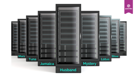 Schon mal versucht, am Telefon einen Servernamen wie srv-xt12-8a3 zu buchstabieren? Genau das wollten wir vermeiden! Deshalb haben alle unsere Server eindeutige, sprechende Namen, die zufällig aus einer Liste von mehreren hundert phonetisch unterschiedlichen Wörtern ausgewählt werden.