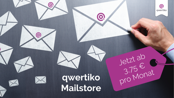 Mit der neuen Preisstruktur des qwertiko Mailstore wird die sichere und manipulationsfreie Archivierung Ihrer E⁠-⁠Mails jetzt noch einfacher: Pro Benutzer und 25 GB Speicherplatz zahlen Sie nur 3,75 € im Monat. Der Speicherplatz wird bei mehreren Benutzern kumuliert – so stehen z.B. 10 Benutzern zusammen 250 GB Speicherplatz zur Verfügung.